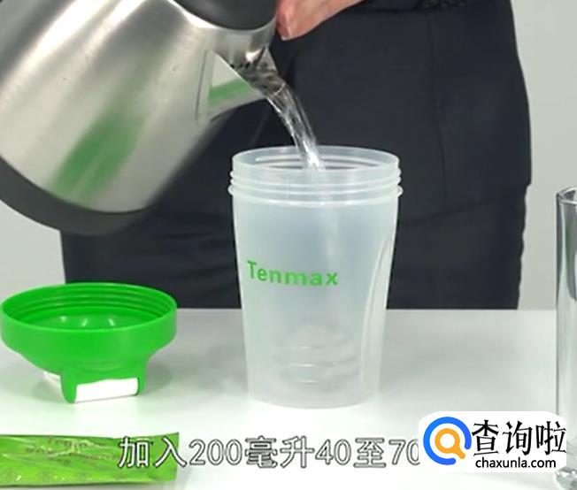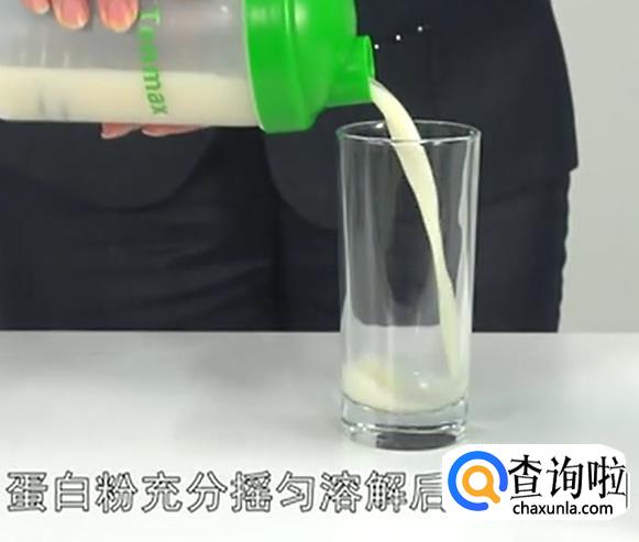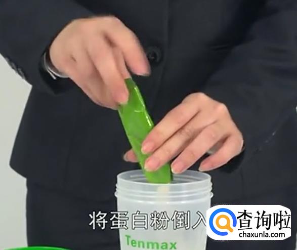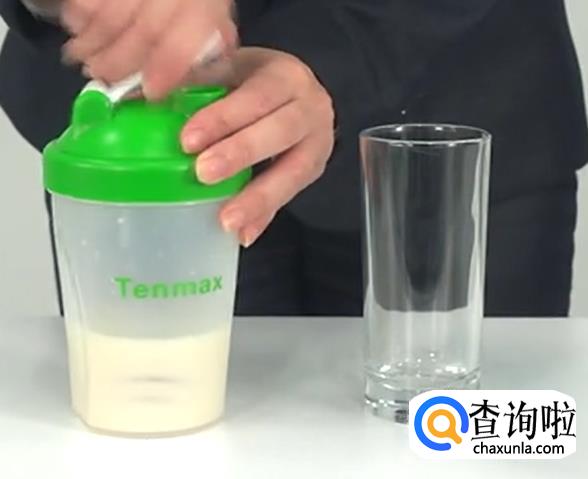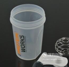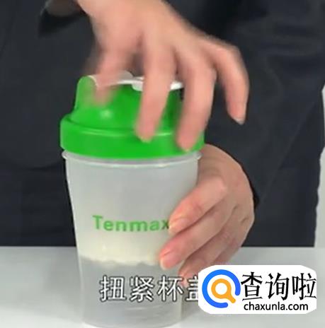 确保上盖扣紧后,上下左右摇晃杯身。此时的摇摇杯中弹簧状的物体可以迅速把蛋白粉充分搅匀。