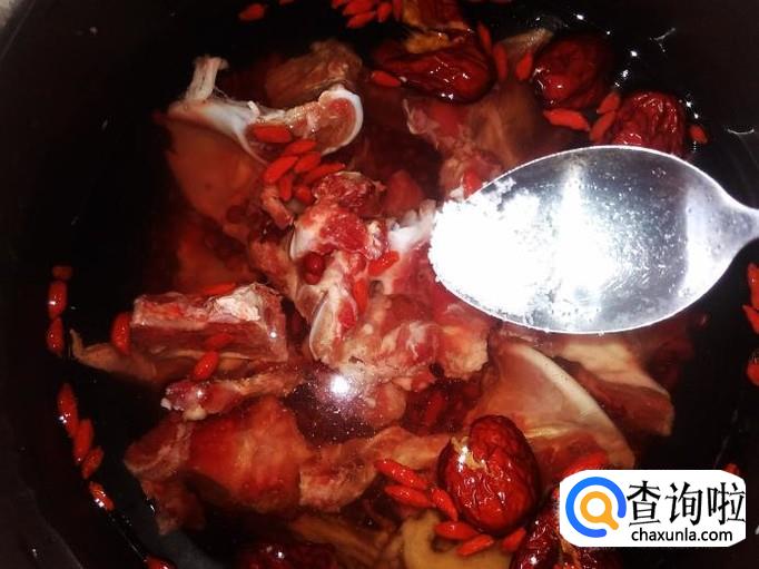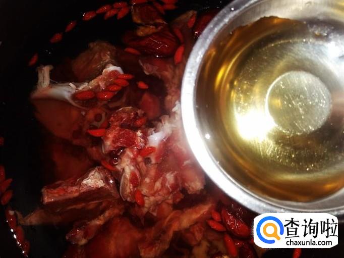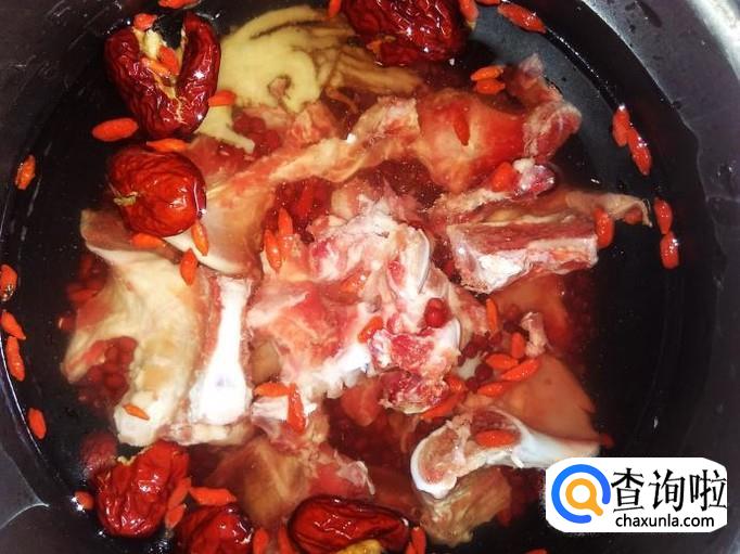 把牛骨和赤豆、药材放到锅里,加水,水量要沒过食材多出两节手指。
