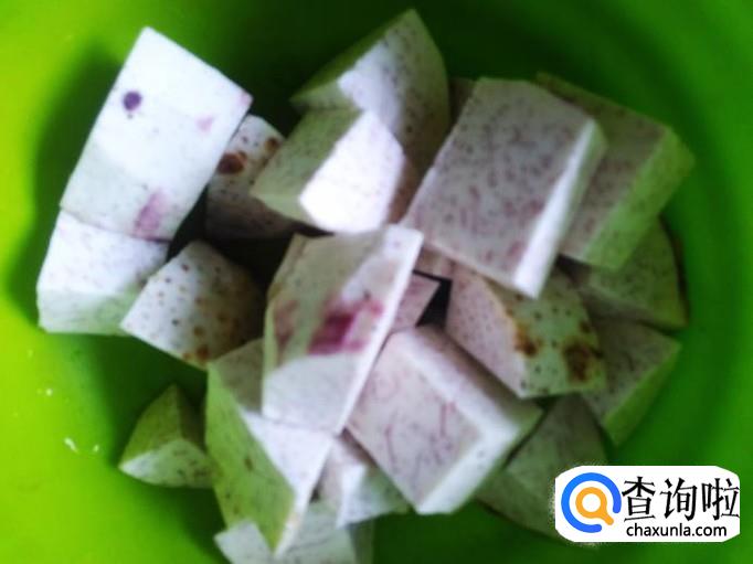 芋头去皮,然后切成方块。