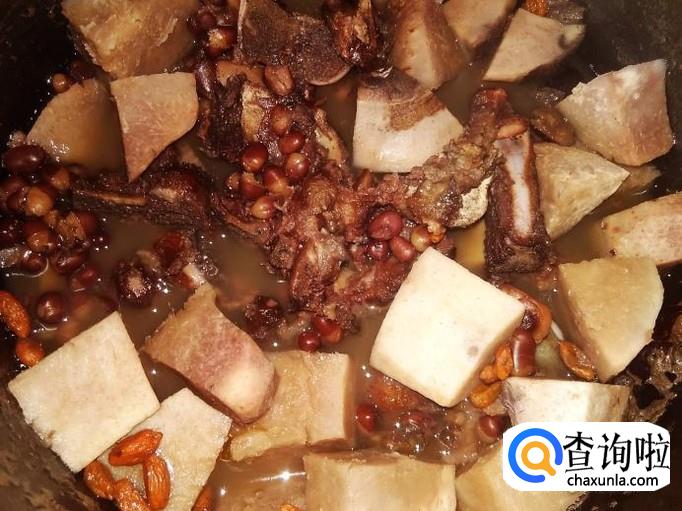 芋头1个,牛骨700克,赤豆50克,红枣、当归、枸杞适量,黄酒1勺。