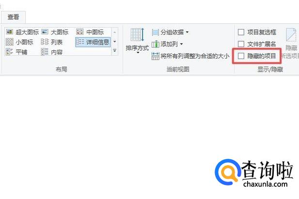 弹出的界面,我们点击隐藏的项目前面的点击勾选框;