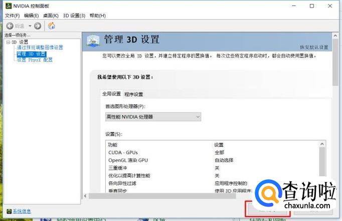 最后,选择好高性能NVIDIA处理器之后,点击页面底部“应用”按钮,即可设置成功。