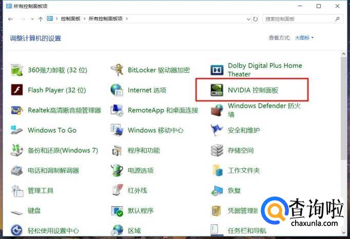 首先,打开操作系统控制面板窗口页面,在窗口页面中找到“NVIDIA控制面板”菜单选项。