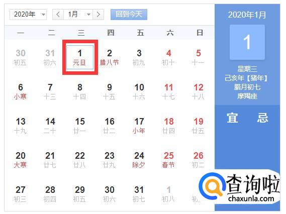 2020年元旦节:
