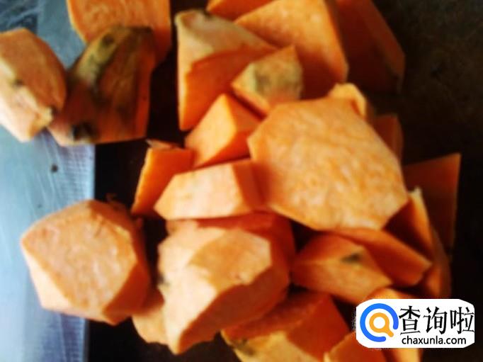 红薯去皮,然后切成一块块。