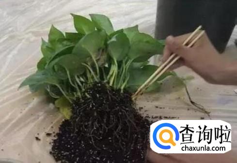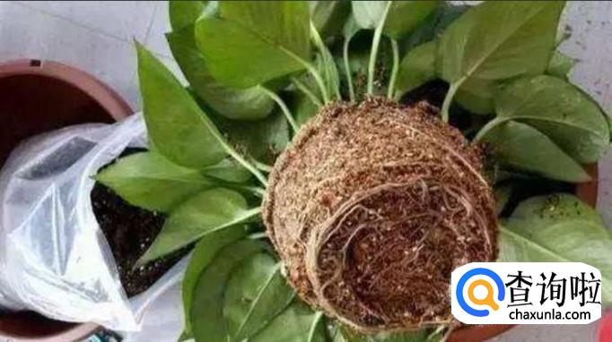 首先我们先把绿萝连根带土一起倒出来,虽说绿萝的生命力比较顽强,但是我们换盆的时候还是要小心。