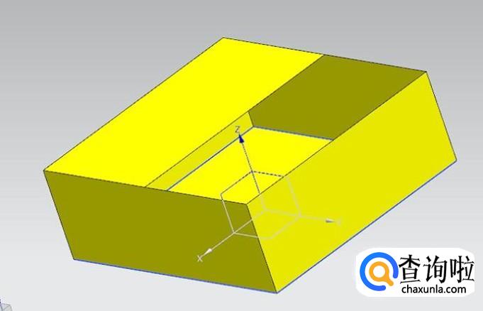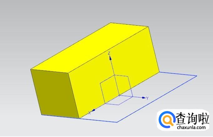 经过之前的拉伸片体,然后创建两个有界平面将片体的上下两面封闭起来,如果不说,是不是很像实体?其实它还就只是个片体,为了让你们更直观、更深刻的认识到面再怎么组合,它还是个片体,请仔细看下面两幅图。第一幅图,笔者激活修剪体命令,用上面那个有界平面作为目标选择体,用坐标系中的XZ平面作为工具。第二幅图就是修剪之后的效果。看到没有,它只能选择修剪一个面,而不是修建一个实体。