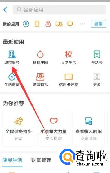 进入之后,选择“城市服务”,进入该页面,如图所示。