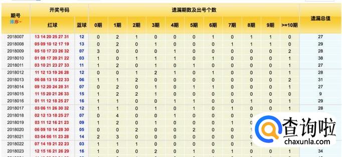这个跟前两个不一样的地方就是可以查到红球实出的次数,概率,平均遗漏,最大遗漏等等数据.