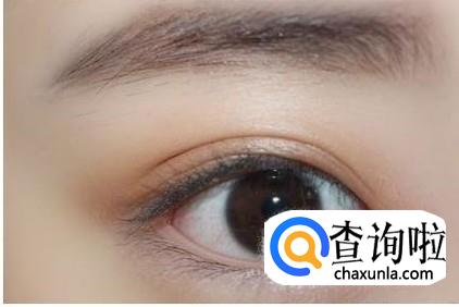 接着我们来画眼影。为了迎合过年的喜庆氛围,我们可以选择粉色或者橘粉色,会显得皮肤很粉嫩,大面积打底整个眼皮,然后选深色系涂眼窝,再用扁平的眼线刷沾取深色画眼线范围,不要太细强调一下就可以。注意每次上眼影时颜色的渐变和晕染尤其是边缘的晕开,变得自然。