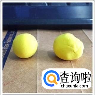 第一步,制作皮卡丘的头与身体。选取一块黄色橡皮泥揉捏成两个圆球,一个为圆形,一个为椭圆。
