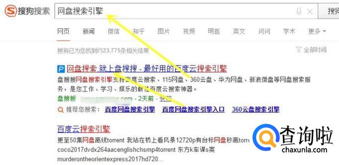首先我们浏览器搜索 网盘搜索引擎 ,点击进入第一个盘搜搜网盘搜索