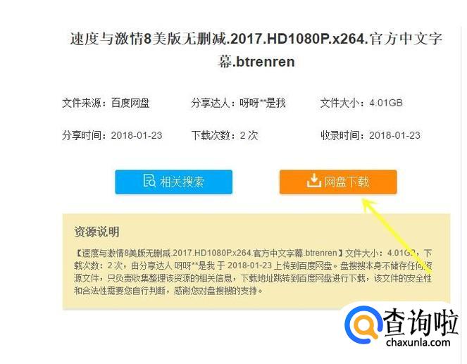 然后就好弹出下图页面,我们点击网盘下载,就可以跳转到网盘下载界面了,就点击下载即可。