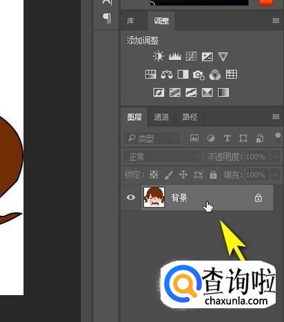 鼠标移到图层面板这里,鼠标放在背景上,左手按ALT键,鼠标双击背景层。把背景层转为普通层,自动命令为图层0