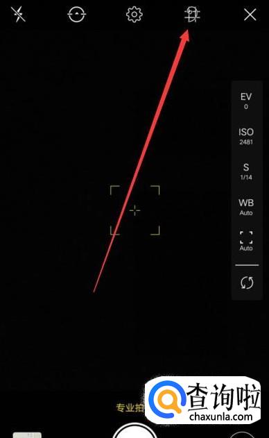 回到拍照页面后,点击相机上部图示位置即可打开网格,如图所示。