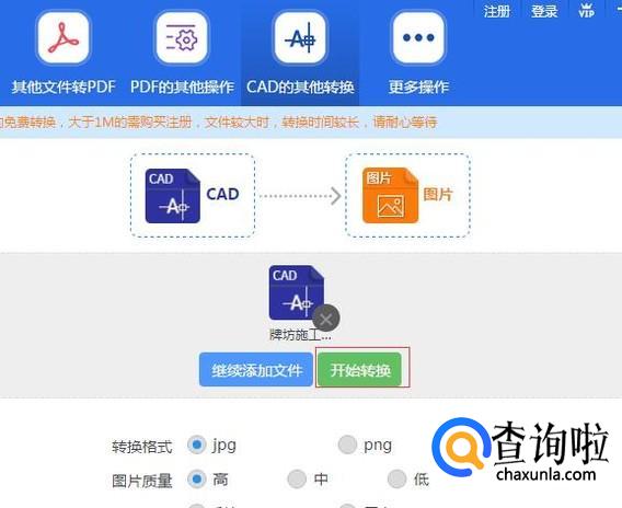 转换过程是上传文件,上传完成,开始转换,转换完成,最后就可以进行下一步操作啦