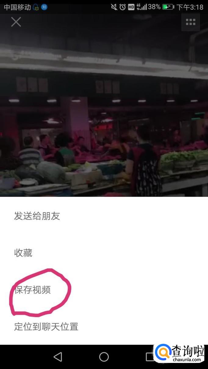 长按屏幕,在弹出的选项选择保存视频,如图。