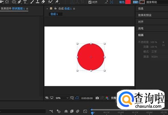 合成创建完成之后,在合成中添加一个形状图层,这里添加了一个椭圆。