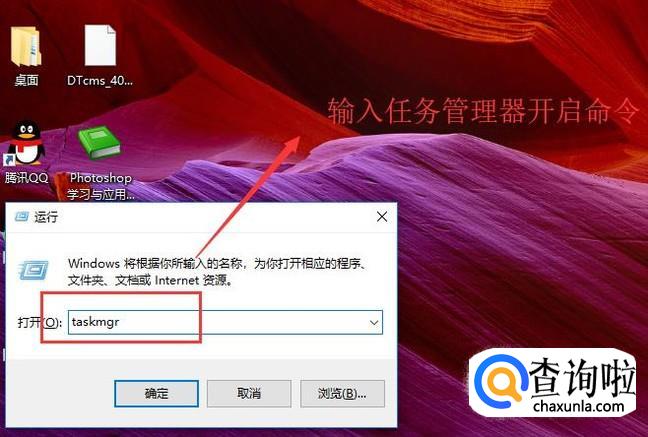 接下来我们按Win+R组合键弹出运行界面,在输入框中输入taskmgr命令,打开任务管理器,如下图所示