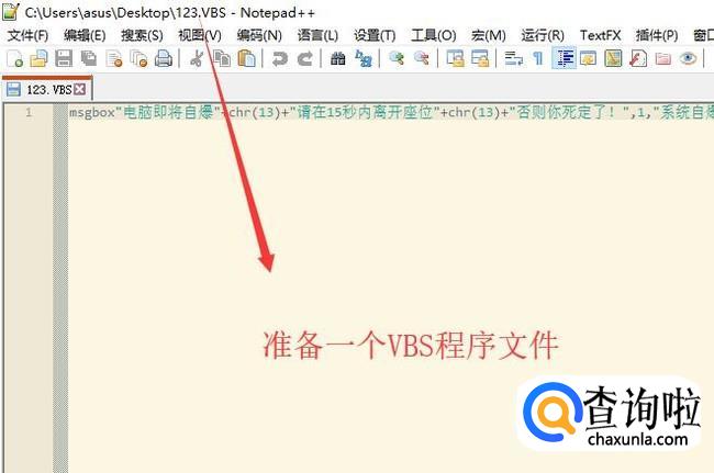 首先我们准备一个VBS文件,在其中加入VBS整人代码,如下图所示