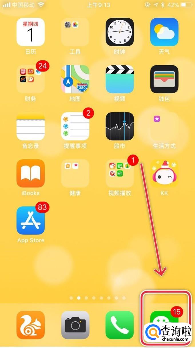 首先在我们的这手机桌面上找到微信并点击它,如下图所示。