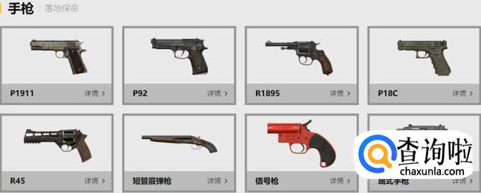 落地保命,前期使用的过度武器。有P1911、P92、R1895、P18C、R45、短管霰弹枪、信号枪和蝎式手枪。