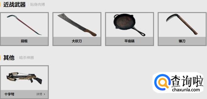 近战武器就是贴身肉搏的,基本上也是前提过度使用,当然基本上随身都要携带一件,防止枪支子弹打完了,来肉搏,最推荐平底锅,可以保命。十字弩占格子,看个人喜好。