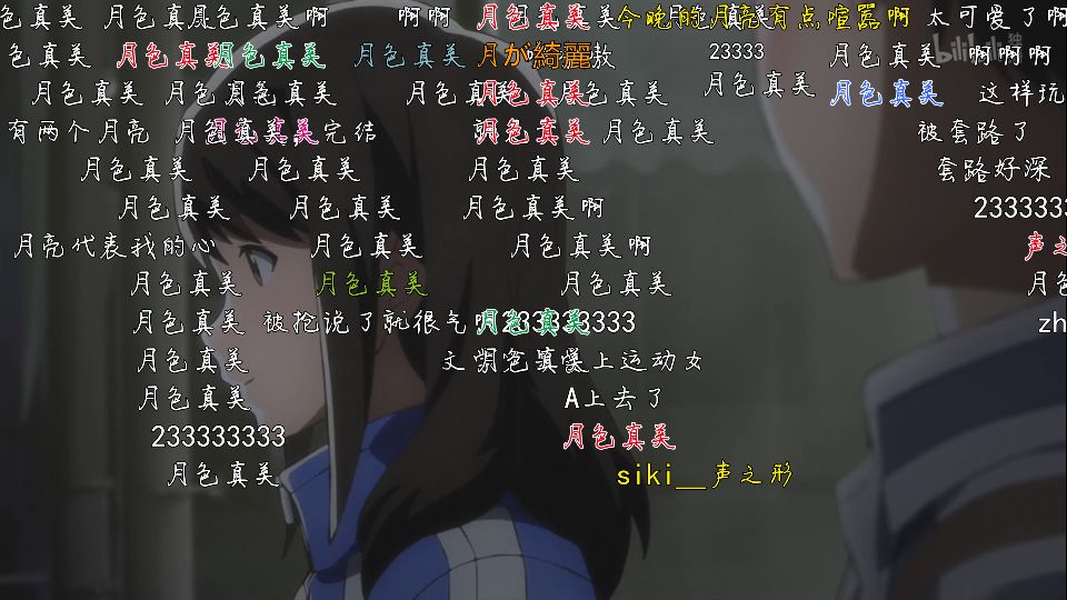 我们在B站很多弹幕上有时候会看到“月色真美”这四个字。在二次元中,它出自动漫《月色真美》,讲述了两个初三的小情侣之间的故事,他们晚上拿着手机聊天,男生尬笑的表情很贴近现实,所以在后面有唯美画风的爱情动漫,很多人都会发“月色真美”。