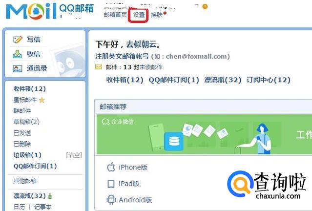 进入QQ邮箱后,登录就看到如下界面,我们点击“设置”。