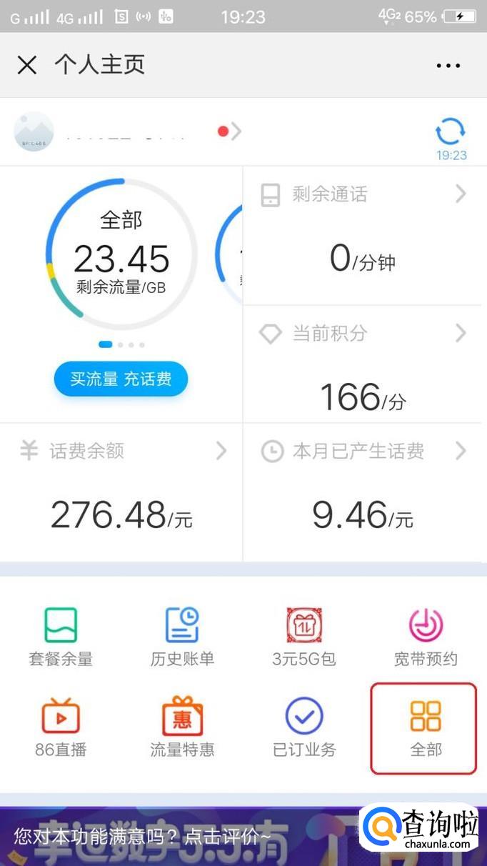 进入个人主页后,我们需要寻找“和多号”业务,如图所示,点击“全部”,就可以在办理服务里面找到“和多号”。