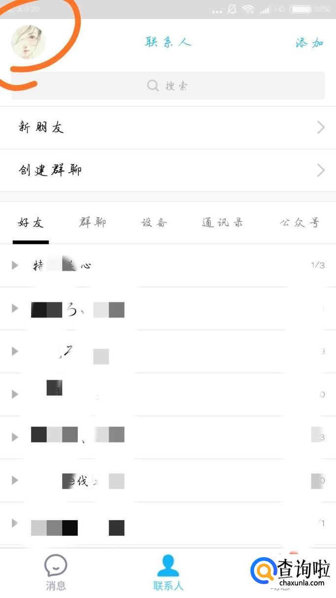 打开QQ软件,点击你QQ头像的位置,如下图所示