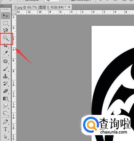 使用ps将我们的图片打开,然后在工具箱内找到魔术棒工具,如图所示: