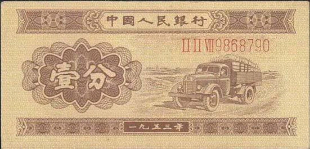 壹分有两种,一种纸币,主体为黄色,正面是一张解放卡车图案,另外一种则是硬币,铝制壹分正面标有年份、麦穗和壹分字样。纸版壹分钱有过两个版本,制造模具用的却是同一个。早期发行的纸版壹分属于第二人民币,发行时间超过半个世纪,全新品市场单价超过100元。