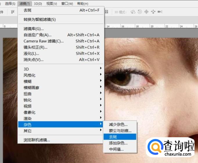 选择工具栏中的滤镜,杂色,去斑