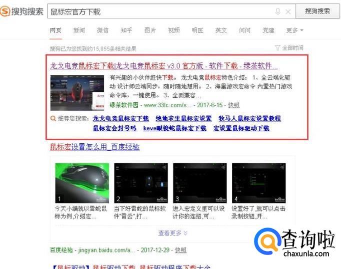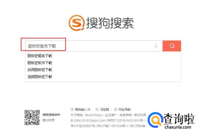 打开搜狗浏览器,输入“鼠标宏官方下载”,点击搜索。
