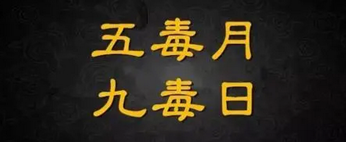 在中国民俗中,农历五月俗称毒月,其中九毒日包括农历五月的初五、初六、初七、十五、十六、十七、廿五、廿六、廿七。端午之日为九毒日之首,因此端午这天有喝雄黄酒,插艾草等辟邪驱毒的习俗。