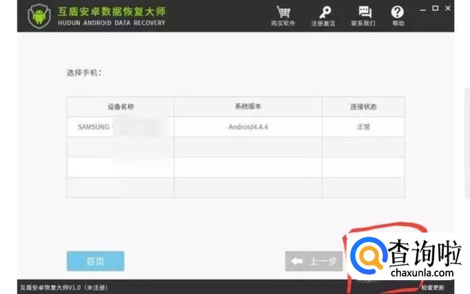 此时,界面上会显示出已经跟电脑连接的设备。点击这个设备后,点击“下一步”。