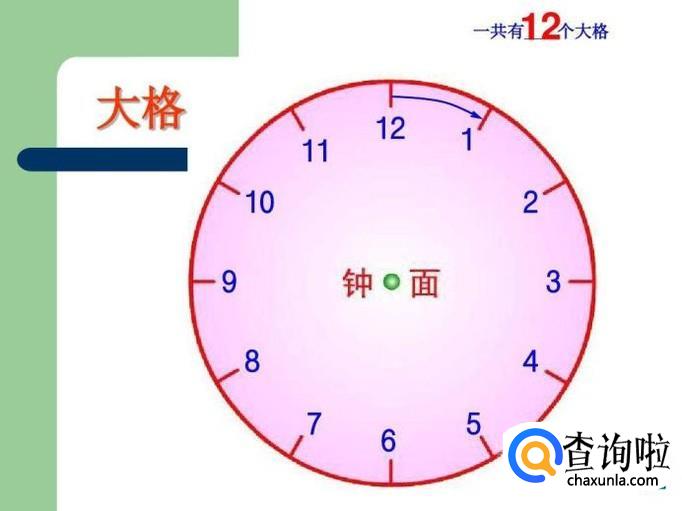 时针就是几点,没有到下一个数字就记前一个数字的时间,一格是一个小时,一共12格
