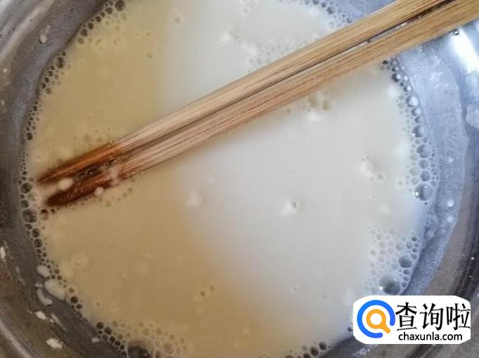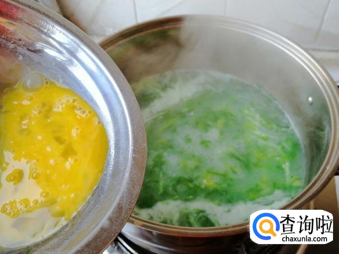面糊主要煮开就可以了,最后加入打散的蛋液,蛋液从锅边转一圈倒入,用勺子搅匀煮开就可以了。