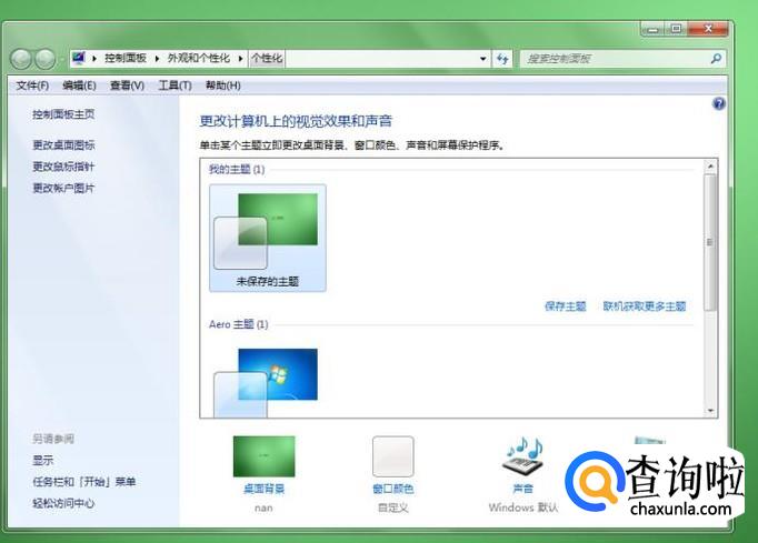 进入“个性化”对话框,在左边找到“更改桌面图标”点击进入。
