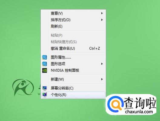 打开电脑,在桌面空白处点击鼠标右键,在弹出的对话框里面选择“个性化”进入。