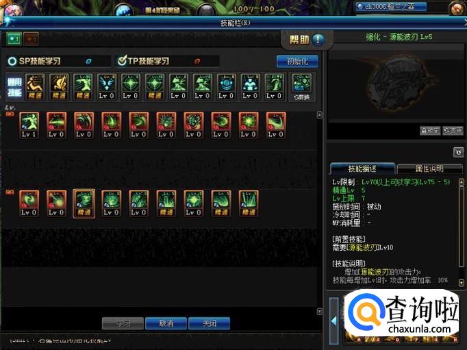 最后是TP点技能,小编推荐强化以下这几个技能:源能波刃,电磁领域,光裂斩和光导裂地斩。