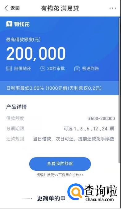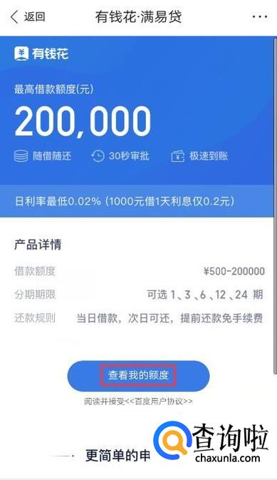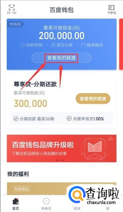 在有钱花界面中还会看到查看我的额度,就点下查看我的额度功能,如图所示