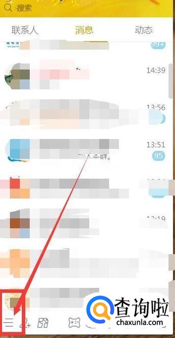 首先在电脑上登录QQ,点击左下方的三条横线。