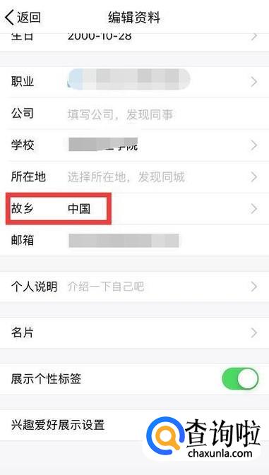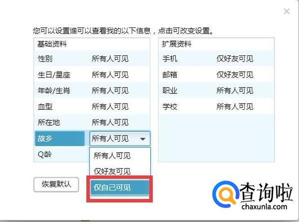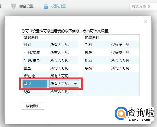 然后点击故乡-所有人可见,点击小三角形。