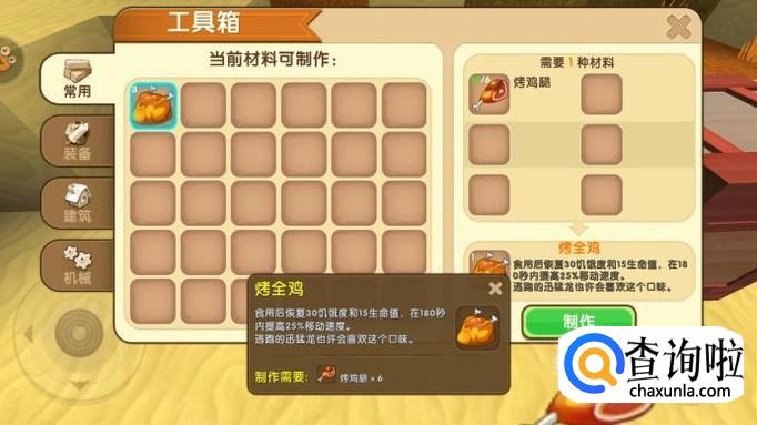 我们先要找一些鸡,最好自己养。杀鸡能够获得鸡腿。