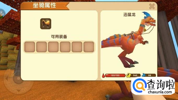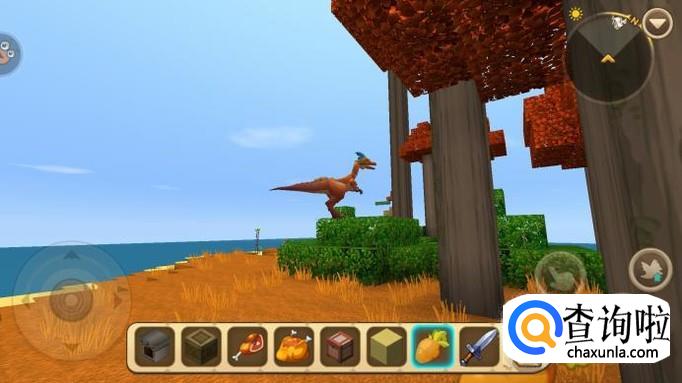 迅猛龙是有攻击性的,会主动攻击玩家。当你遇到迅猛龙后,你要先打它,打到它逃跑,头上会出现一个哭的图标。这时候你就要用烤鸡(1个烤鸡=6个烤鸡腿合成)来喂它,有几率成功驯服。
