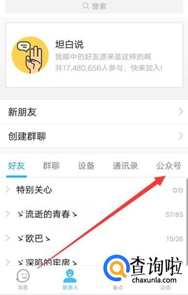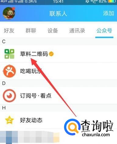 进入之后,在联系人页面选择“公众号”,点击并进入,如图所示。