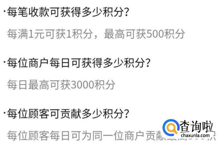 1、 商家要用官方邮寄的收款码进行收款,商家每笔收款一元可以获取1积分。