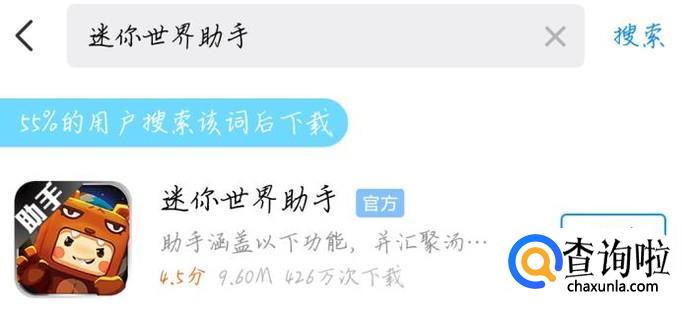 单击应用管理器的搜索,搜索迷你世界助手。单击搜索。下方会出来迷你世界助手